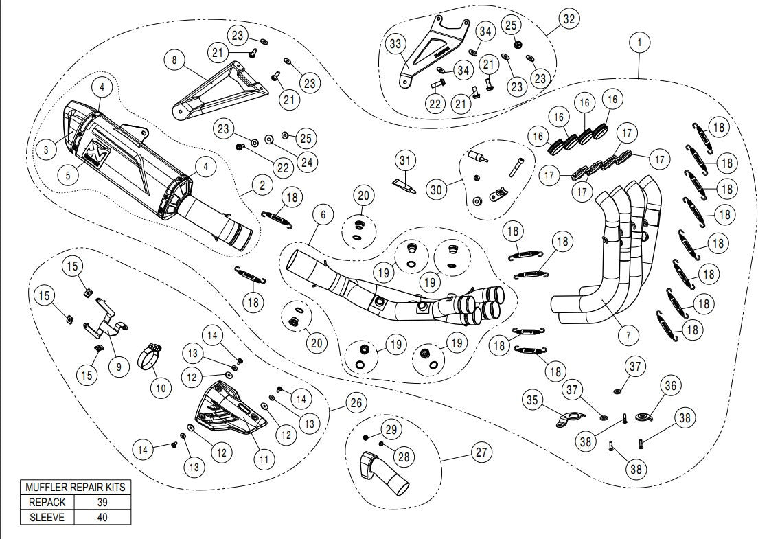 - Svi metalni dijelovi prigušivača su od titana (uključujući unutrašnjost)