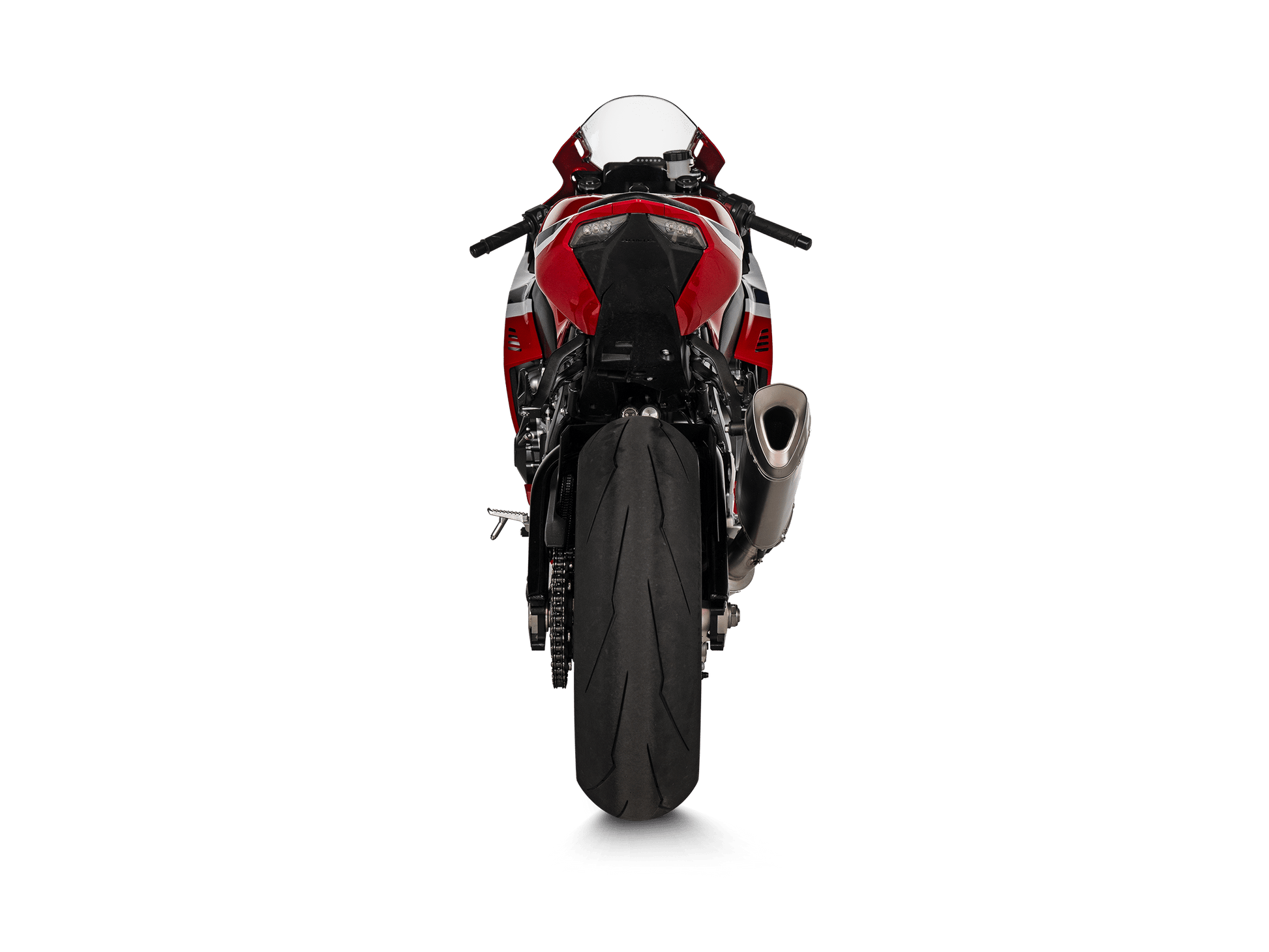 Sustav se sastoji od visokokvalitetnog titanijskog ispušnog lonca i nehrđajuće čelične međucijevi s rezonatorom, koji značajno smanjuje razinu buke, a da pritom ne gubi karakterističan Akrapovic zvuk. Ova kombinacija osigurava optimalno vođenje ispušnih plinova, poboljšani okretni moment i ravnomjernu isporuku snage – posebno u srednjem rasponu okretaja.