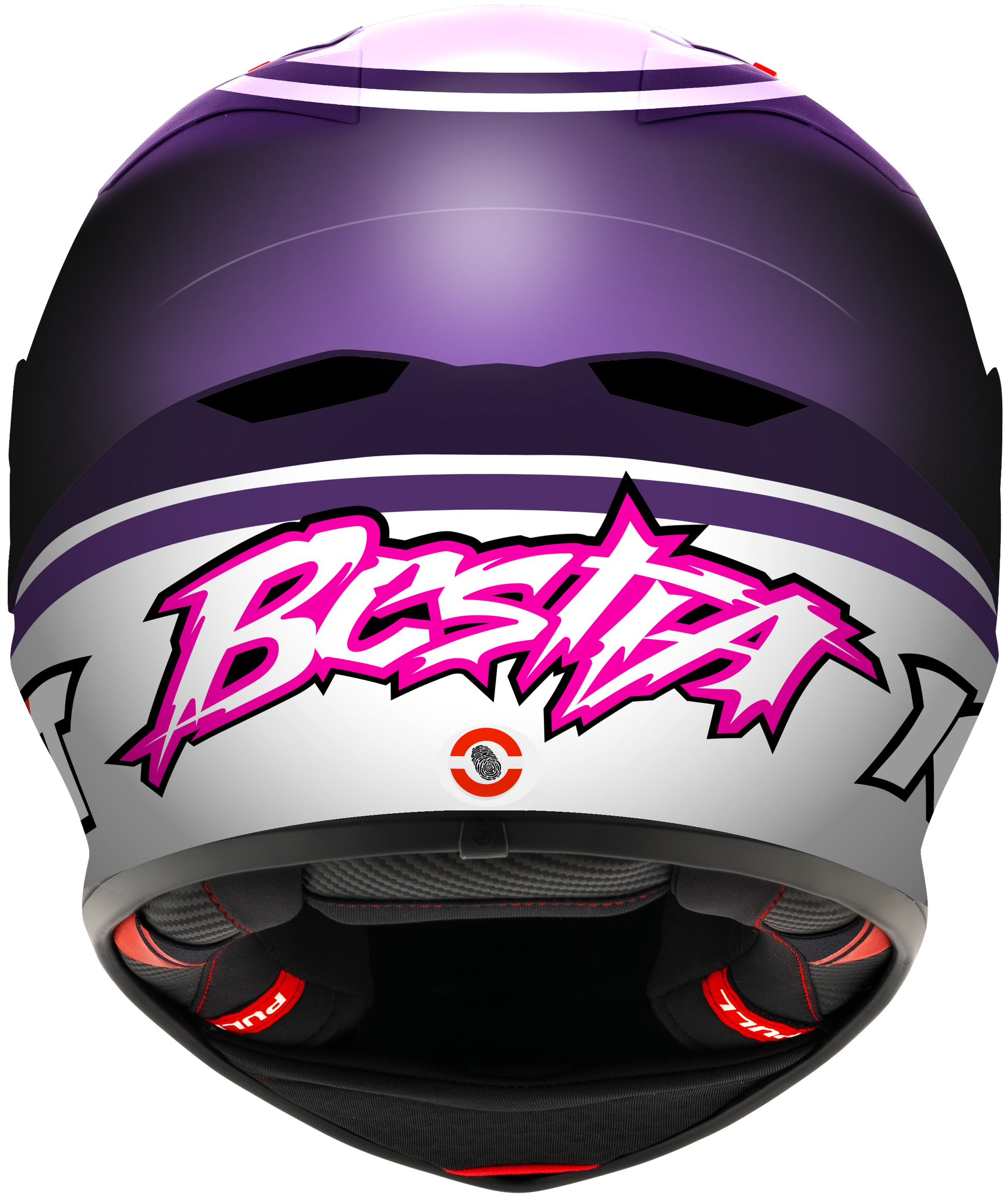 - Dvojni D-prsten sustav zadržavanja osigurava sigurno i stabilno prianjanje kacige, čak i pri ekstremnim trkaćim manevrima.