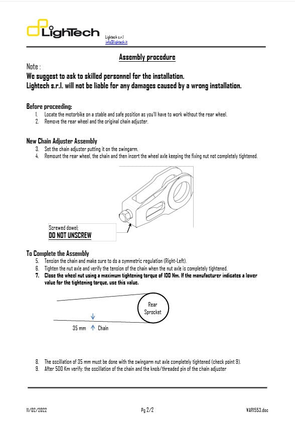 Kettenspanner LighTech Yamaha R6 RJ11, RJ15 (06-16) TEY608