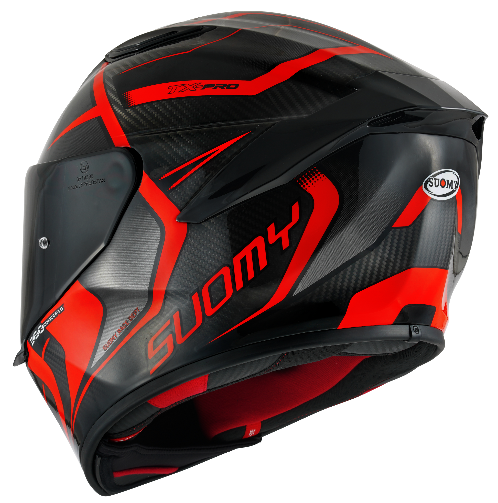 Suomy TX-Pro kaciga opremljena je s četiri prednja usisnika zraka koji osiguravaju savršenu ventilaciju i drže glavu hladnom čak i tijekom dugih vožnji ili intenzivnih utrka. Dizajn kacige testiran je u vjetrotunelu kako bi se usavršila aerodinamika i osigurala maksimalna stabilnost pri brzim vožnjama.