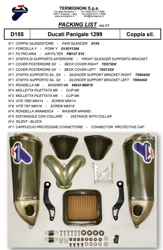 Termignoni Slip-On Kit Carbon Ducati Panigale 1199/R/S (12-17) D155102CPT+D155Y
